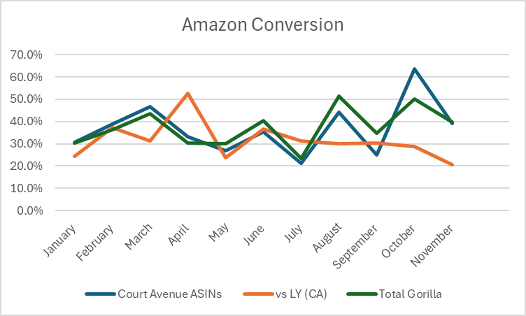 Created optimized Amazon PDP and website digital imagery to improve conversion performance. Following the content refresh, conversion rates nearly doubled compared to earlier in the year, with sustained gains over subsequent months. Strategic image optimization across Amazon and web platforms drove measurable, long-term performance growth.